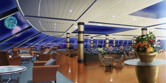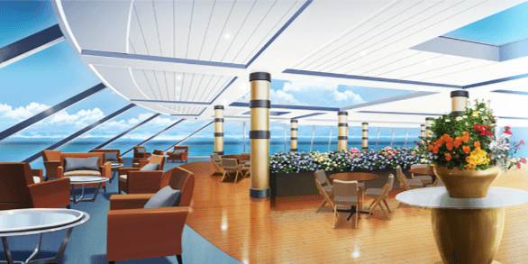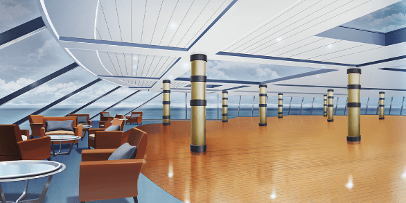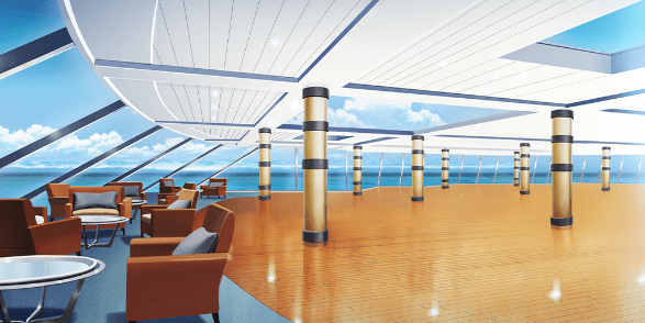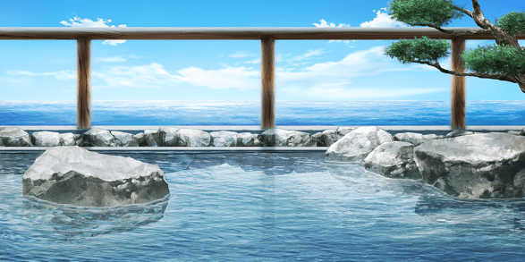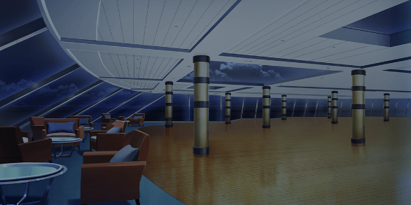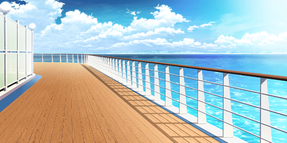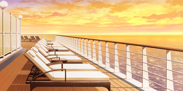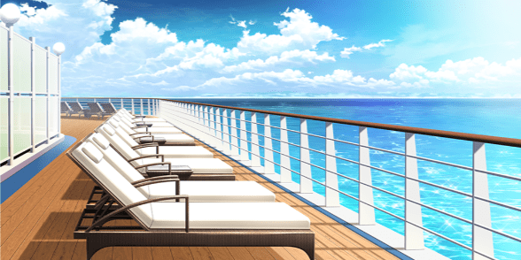 | 豪華客船のデッキ(昼・デッキチェアなし) | 豪華客船のデッキ(夕・デッキチェアなし) | 土手の桜並木(昼) | スーパー銭湯の宴会場(桜飾り) |