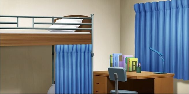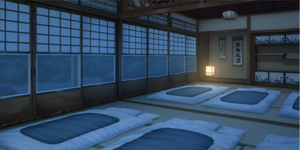 | 寮・玄関 | 寮・廊下 | 寮 | 寮(照明OFF) |