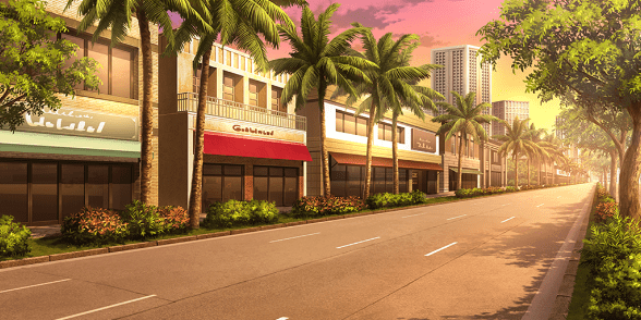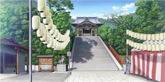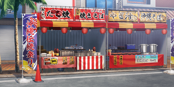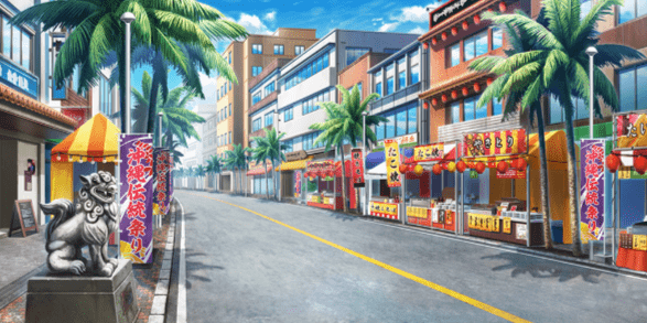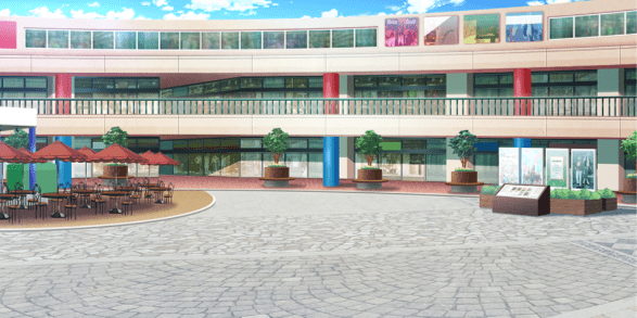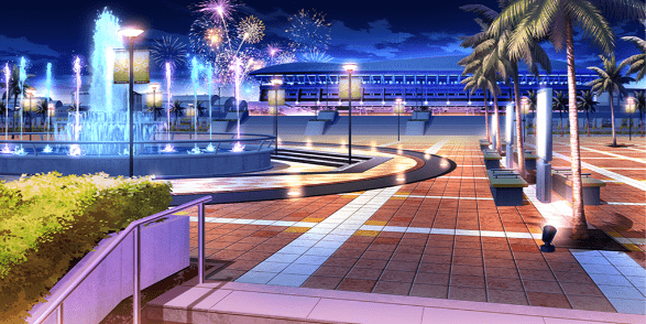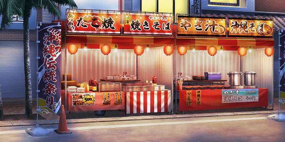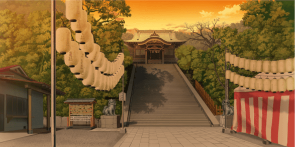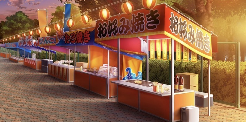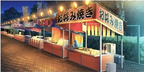 | ショッピングモール・広場(昼) | 神社(夕方) | お笑いステージ周辺(昼) | お笑いステージ周辺(夕) |