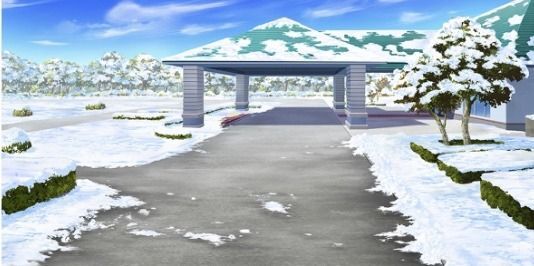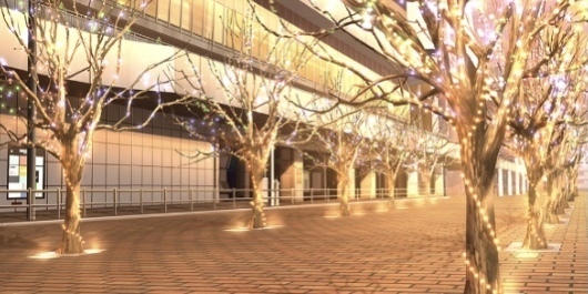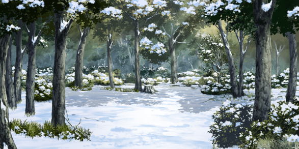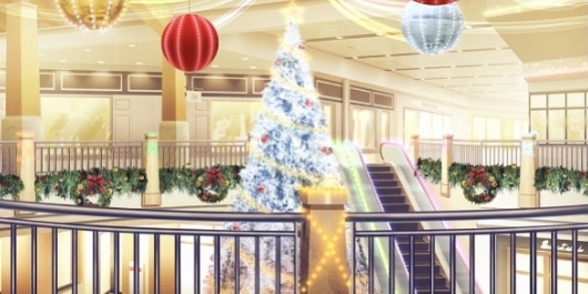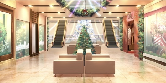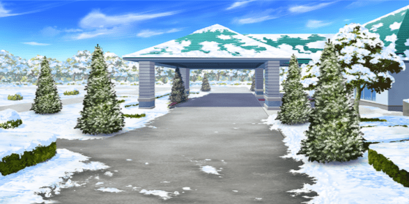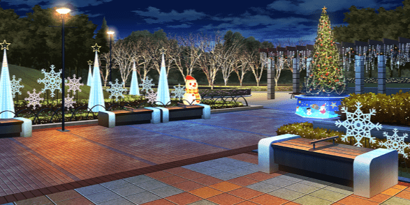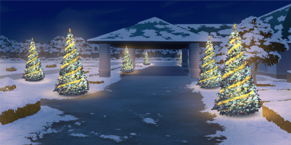| 合宿施設入口付近(昼/雪/ツリー/照明OFF) | 合宿施設入口付近(夜/雪/ツリー/照明ON) | 森の中(昼/雪) | ショッピングモール屋内・ショップ前(正月) |