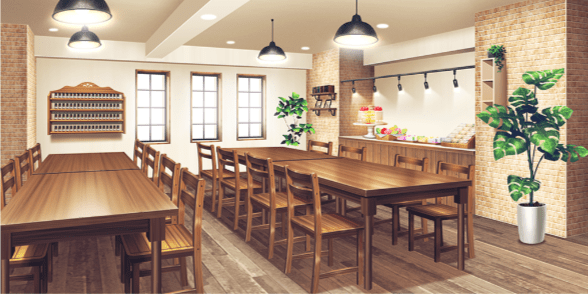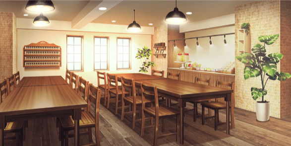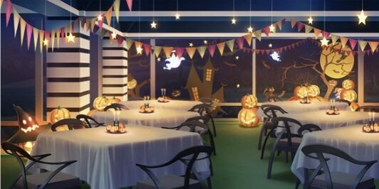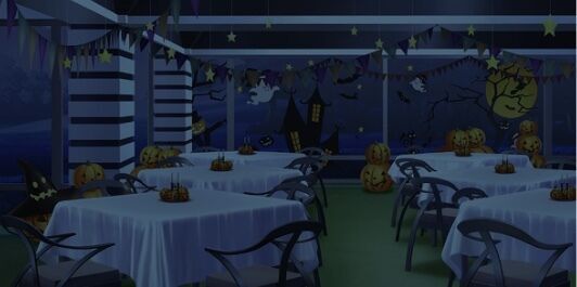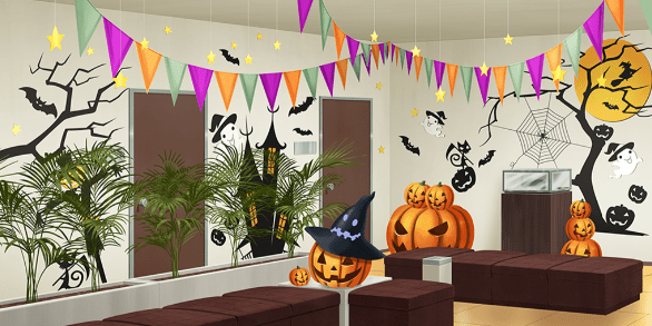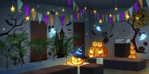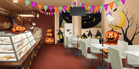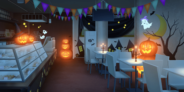| アナログゲームカフェ | 本屋(照明ON) | バーカウンター(ハロウィン/照明ON) | 集会所 |
