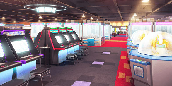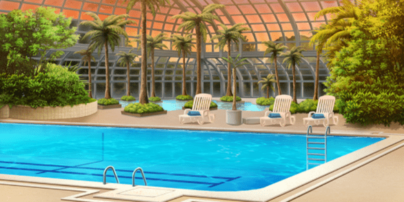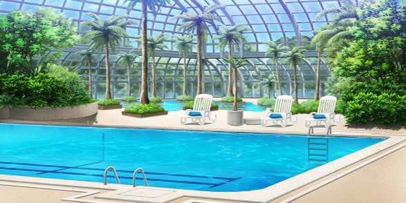| ロビー(夜/照明OFF/テレビON) | ゲームセンター(クレーンゲーム) | 屋内プール(通常水位/昼) | 屋内プール(通常水位/夕) |