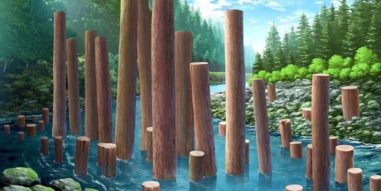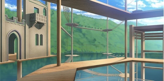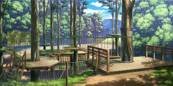 | 森の中の川/緑 (昼/曇り) | アスレチック | 高台(昼/虹) | 星空 |