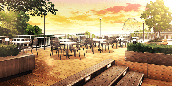 | ファミリーレストラン | 川原にかかる橋(夕/提灯なし) | オーガニックカフェ | 巨大迷路 |