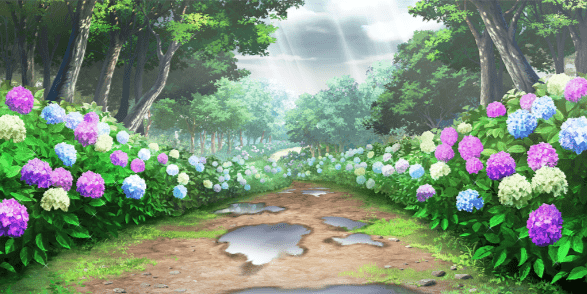 | ファッションショーの会場(夕) | 海辺の教会(昼) | 紫陽花の道(昼/雨上がり) | 16面コート横の通路(昼/雨上がり/紫陽花) |