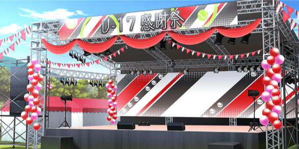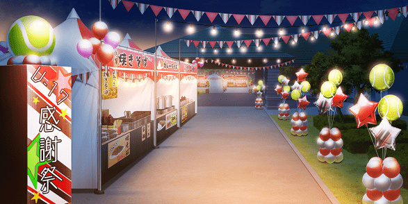 | 感謝祭ステージ(昼) | 合宿施設入口付近(昼/感謝祭) | 合宿施設入口付近(夜/感謝祭) | エントランスホール(昼/感謝祭) |