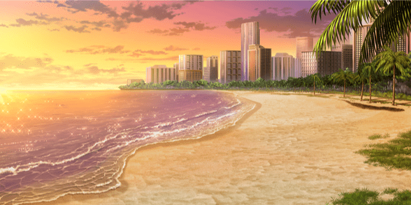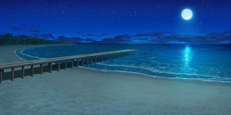 | 海近くの洞窟(夕) | 桟橋のある浜辺(昼) | 桟橋のある浜辺(夕) | 桟橋のある浜辺(夜) |