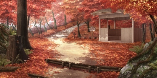 | 合宿所への道・紅葉(昼) | 合宿所への道・紅葉(夕) | ||