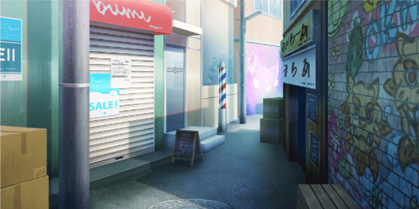 | ススキ野原(夜/満月) | 路地裏(昼) | 路地裏(昼/グラフィティアート) | 商店街(夜/ハロウィン) |