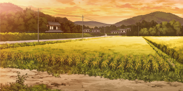| 田舎の道(昼) | 田舎の道(夕) | 古民家宿(昼) | 古民家宿(夜) |