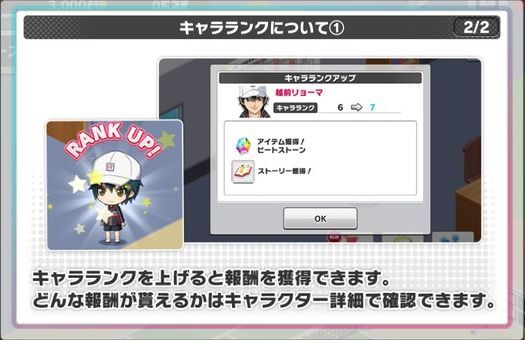 - キャラクターのキャラランクが上がることで報酬を入手することができます。