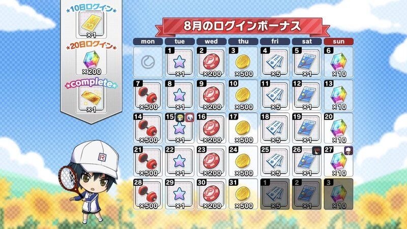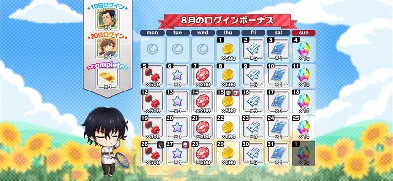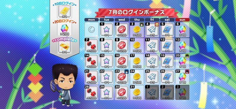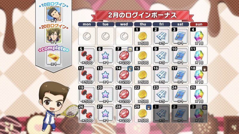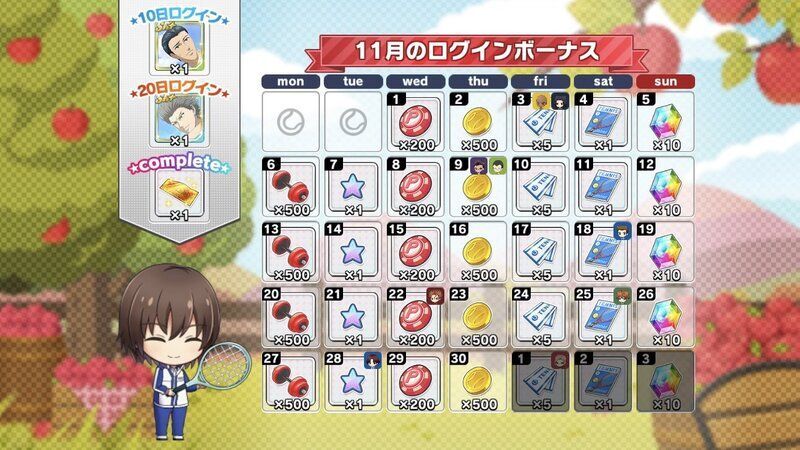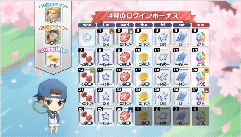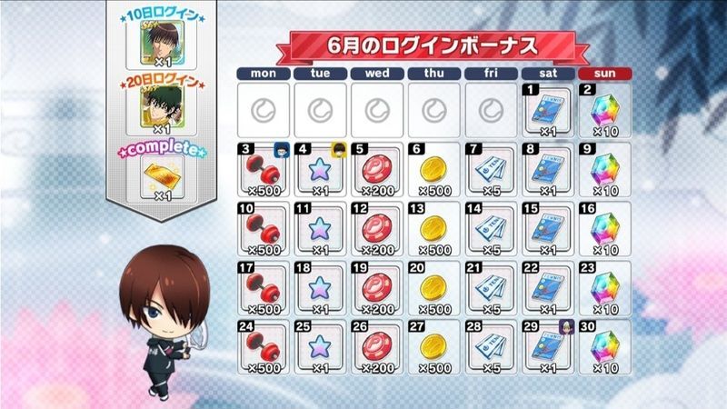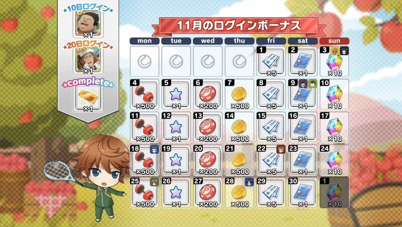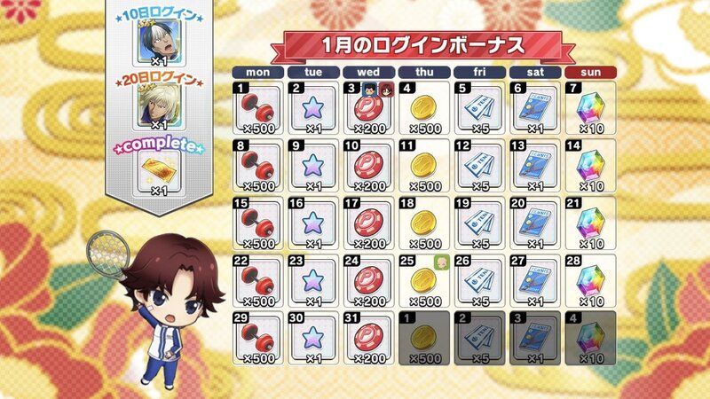 | 月間ログインボーナスとは別に獲得できるデイリーログインボーナスについてはこちら→「コートランク別ログインボーナス」 |