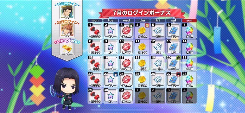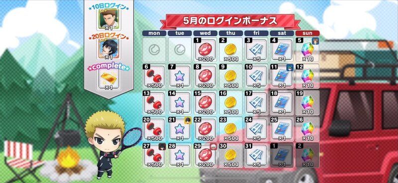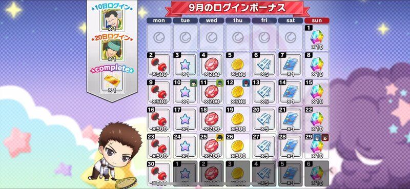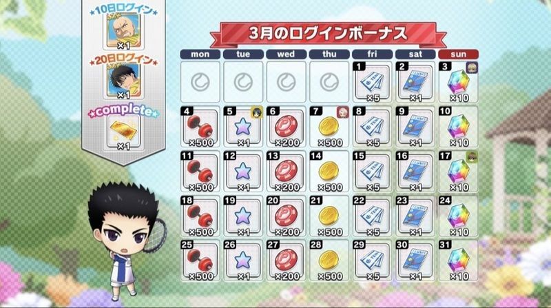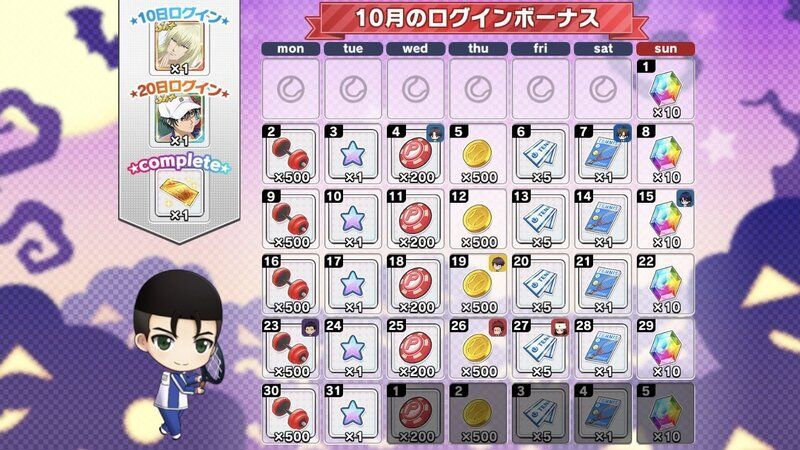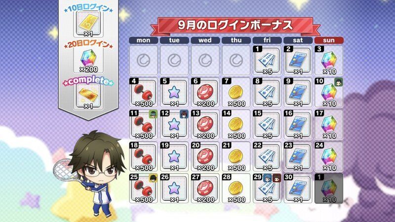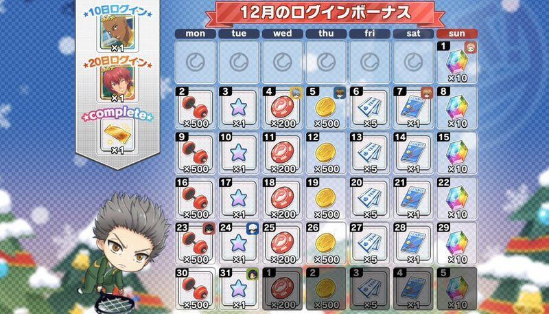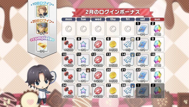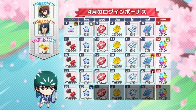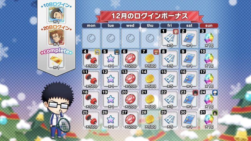 | 月間ログインボーナスとは別に獲得できるデイリーログインボーナスについてはこちら→「コートランク別ログインボーナス」 |