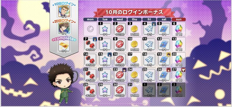 | ・complete報酬については、該当月すべてのログインスタンプを押したユーザーのみ、最終日に獲得できます。 |