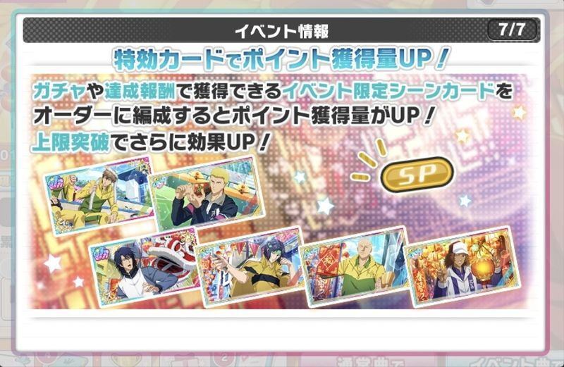 イベント特効カードをオーダーに編成すると、ポイント獲得量が上昇します。
