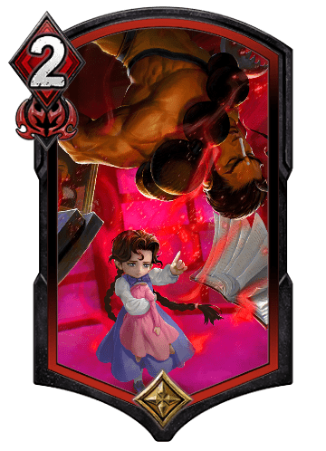 | 死亡時:自分のデッキを2枚墓地に送り、ランダムな敵ユニット1体に3ダメージ | |