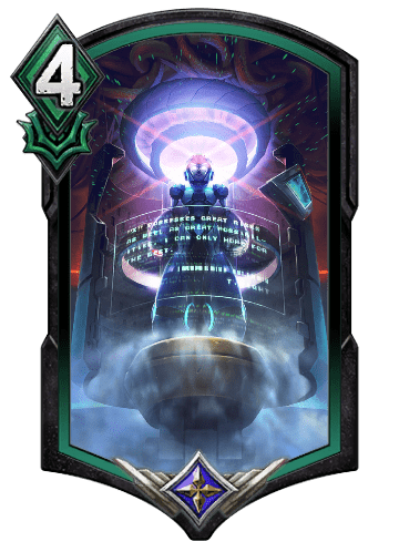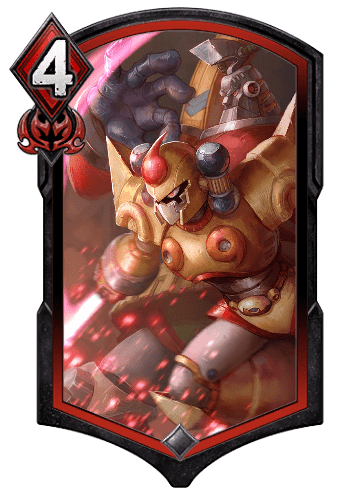 | 全ての敵ユニットに4ダメージ <メモリー>:7 ランダムな味方ユニット1体にこの効果で破壊したユニットの数分、+3/+3 [メモリー数:0] | |