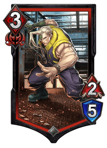 | <臨戦> プレイ時:敵ユニットに、このバトル中にアクションカードを使用した回数分のダメージを振り分ける 場にいる間:このユニットをコントロールするプレイヤーがダメージを与える効果でユニットを破壊した時、敵ヒーローに2ダメージ (<波及>によるダメージを除く) [使用回数:0] | |