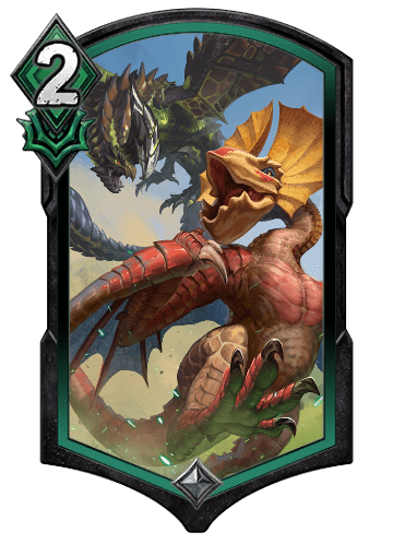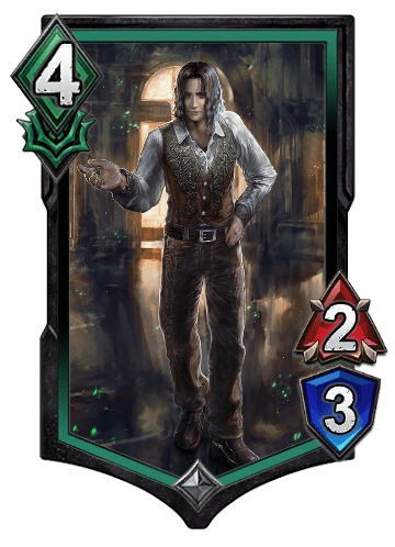 | 死亡時:自分のデッキを2枚墓地に送り、ランダムな味方ユニット1体に+1/+4 | |