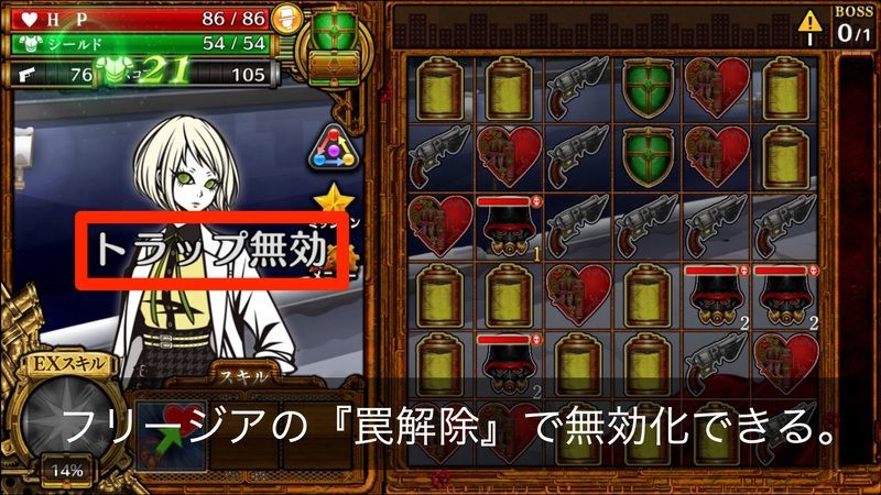 少ない銃パネルで複数のブラボを倒すことを心がけよう。ブラボが出現するたびに1体ずつ倒しているとたちまち銃パネルが枯渇してしまい、窮地に陥ってしまう。攻撃を受けてもシールドが壊れなければ問題ないので※注シールド値に気をつけながら盤面に銃パネルが多く残るよう整理しながら進め、ボスを迎え討とう。