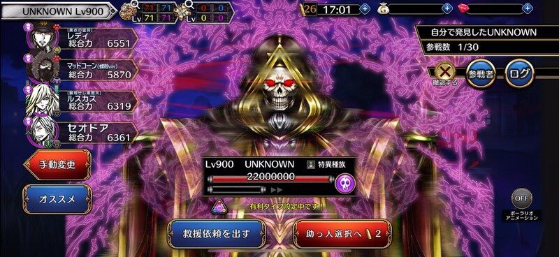 編成するキャラと武具を十分に強化し、総力をあげてUNKNOWNを撃破しよう。