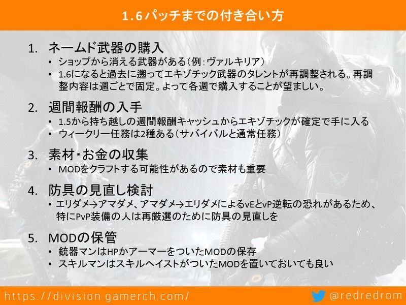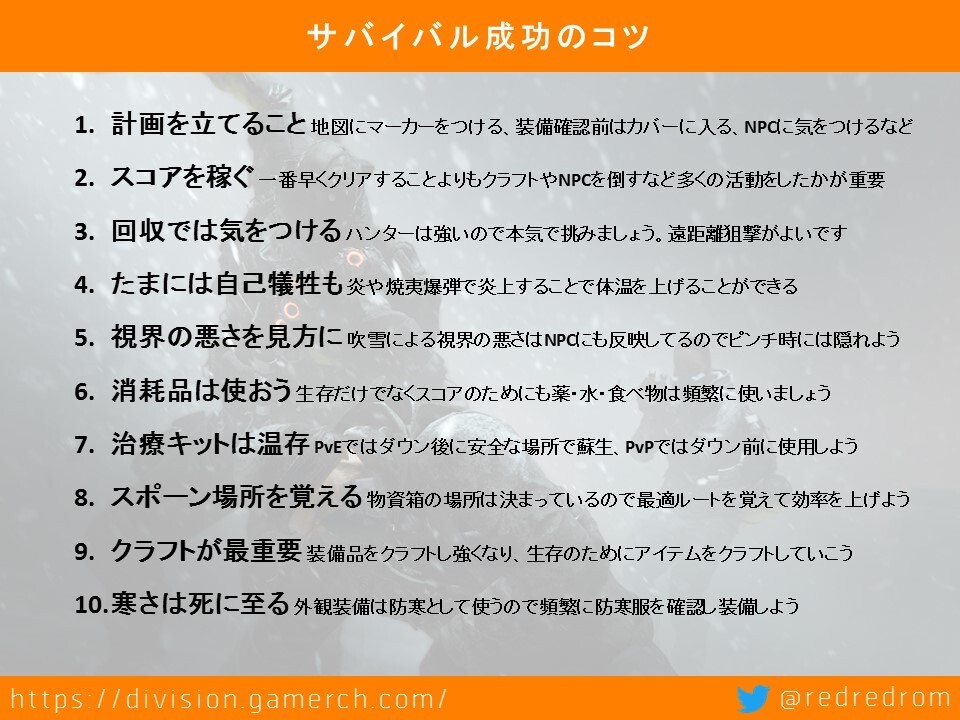 - 「The Division」の非公式攻略情報・交流サイトで、新着情報と編集者がよく使う情報をまとめる目的です。