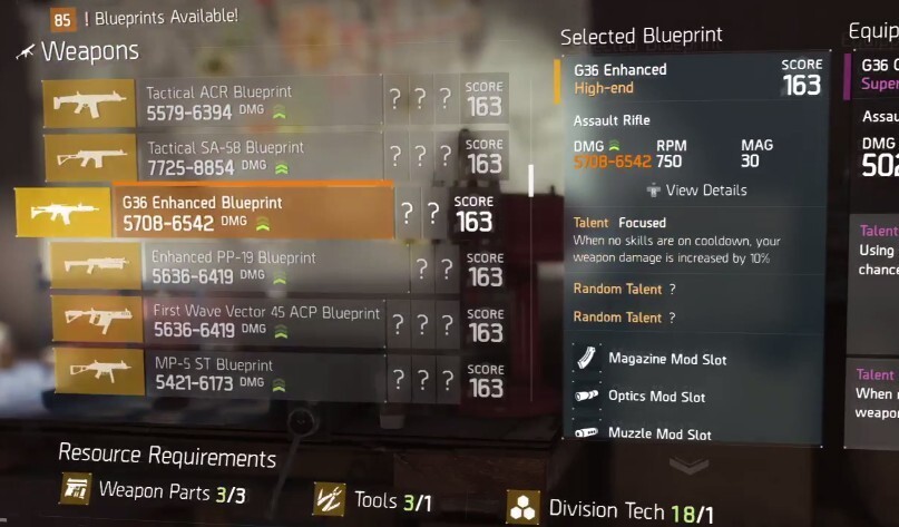 - 私は黄色ACRを作ってます。なぜならG36の3つ目のタレントのフォーカスが使えないためワンチャンとしてACR(笑)