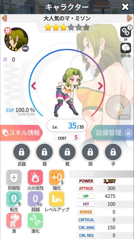 | 絆キャラクターの攻撃力が20%増加、絆アクティブスキル発動 マ・ボラ|(基本)|[一般]/[継承]/[改] + マ・ミソン|(基本)|[一般] + ハン・ソンイ|(基本)|[一般] + ジャン・ジャンミ|(基本)|[一般]/[継承]/[改] + サターン|(基本)|[一般] | |