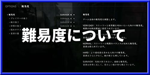 難易度によって変更される設定や項目、難易度の変更タイミングなどを紹介しています。