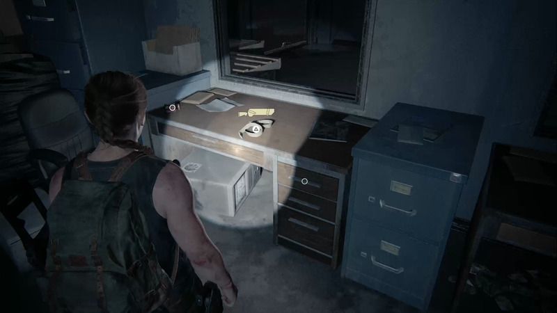アビーの両手武器ホルスターは「アビー編・シアトル1日目の海岸で作業台がある部屋の隣室の机の上」で手に入れることができます。