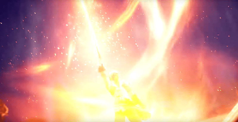 剣に溜めたエネルギーを空に向かって解き放つアルフェン。