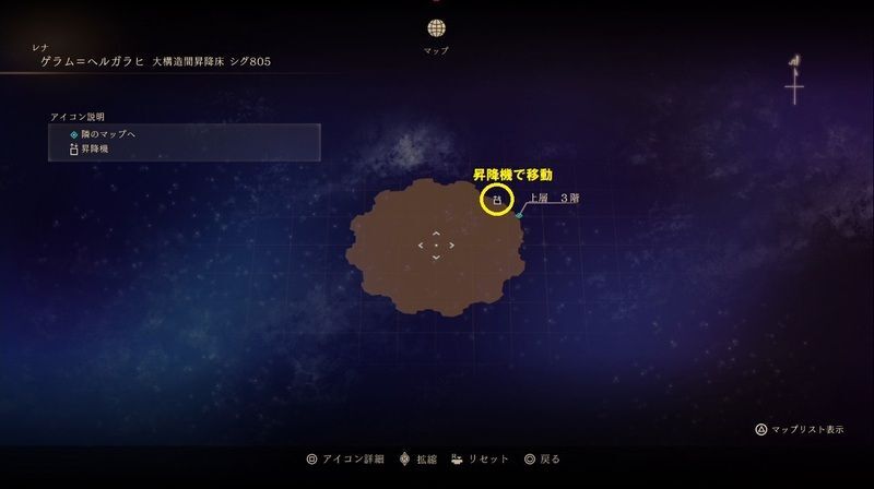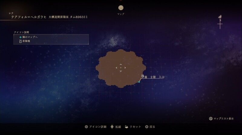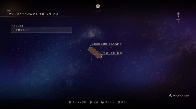 | ・昇降機で『下層2階』へ(移動するとエリア名が『大構造間昇降床 タム896311』に変更)。 |