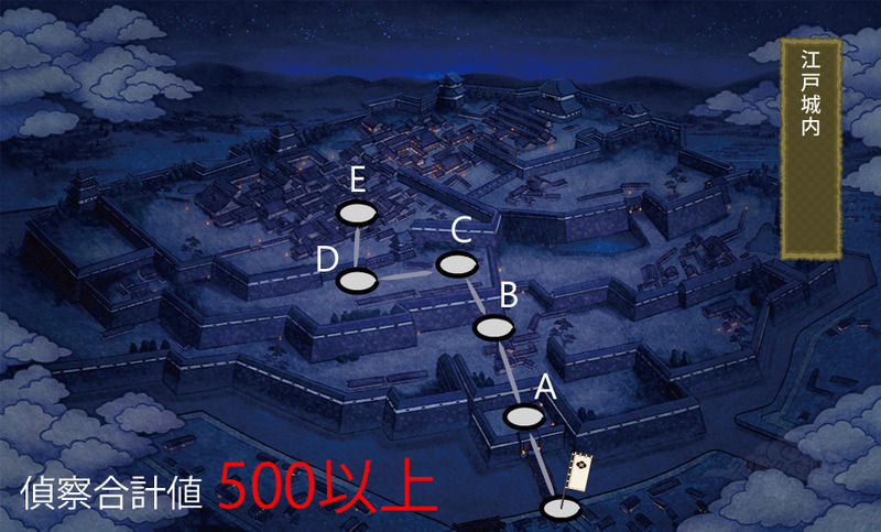 | E | 愛国見回り隊 苦無_丙、槍_甲、苦無_丙、槍_甲、大太刀_甲、大太刀_甲 | 200 | 1000 |