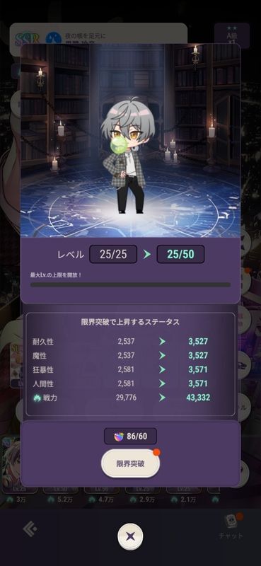 限界突破の果実はキャラカードのレベル上限を突破するアイテムです。キャラのレベルを最大にすることで限界突破の果実が使用できるようになります。