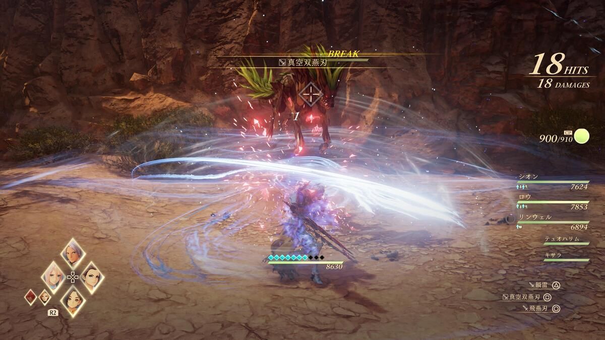 テイルズの特徴のひとつであるアクション要素のある戦闘は、従来の楽しさを残しつつ初心者でもしっかり面白さが感じられるようになっています。何となくしかわからない状態であってもそれなりに戦うことができ、コンボを繋げる爽快感を味わえるので、キャラを動かすこと自体が単純に楽しいです。