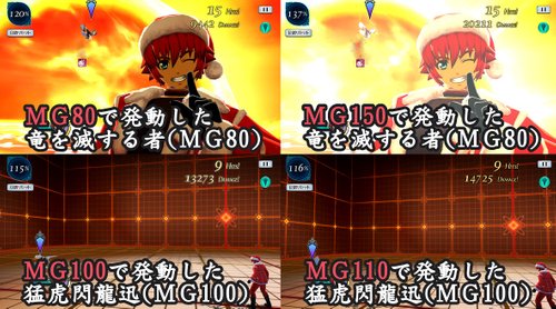画像の通りMG150で発動したMG80技はMG80で発動した時よりも