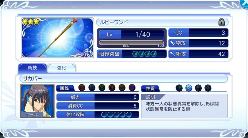 | 味方一人の状態異常を解除し、15秒間状態異常を防止する術 | |