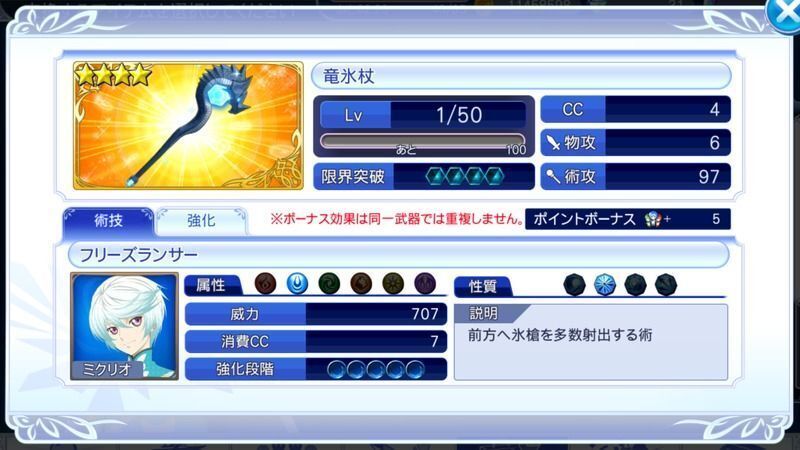 | 強化6 | クリティカルレイジ中、詠唱速度が2倍 |