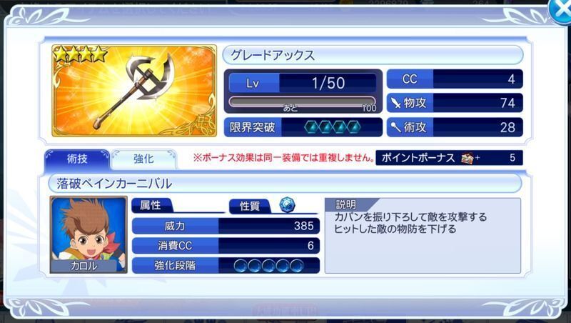 | 18/1/10装備の名称を「グレードアックス」から「グレートアックス」に変更 | |