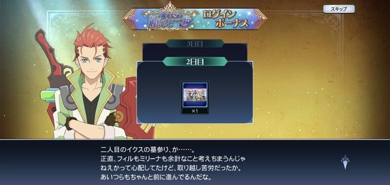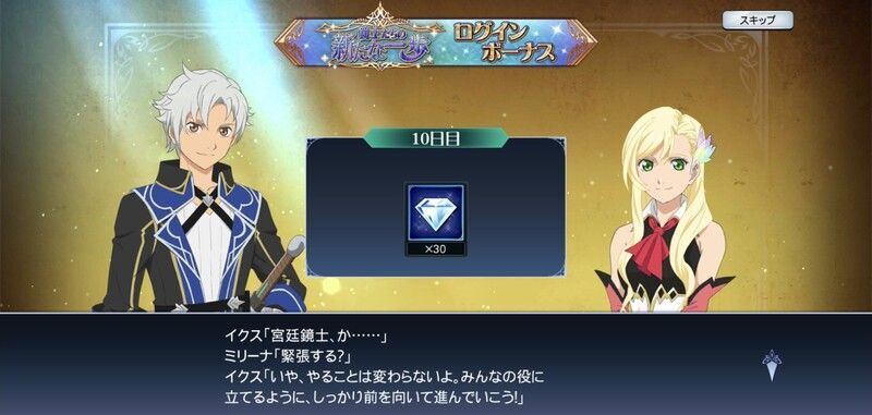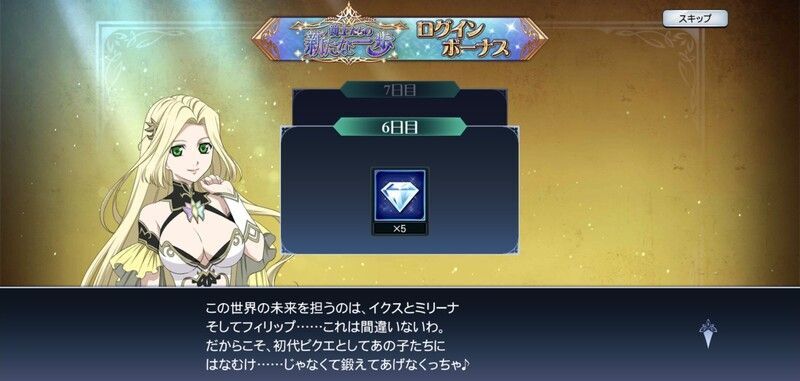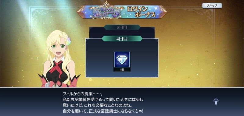 | 鏡士たちの新たな一歩ガシャチケット×1 | 2 | 鏡士たちの新たな一歩ガシャチケット×1 | 4 |