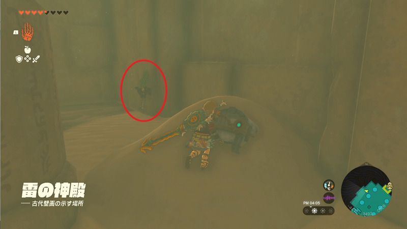 ゴーレムの剛弓は雷の神殿B1の光明の間にある壁が壊れた場所から中に入ると宝箱があります。宝箱の床は落ちてしまうので、アイテムを回収したらモドレコで戻りましょう。