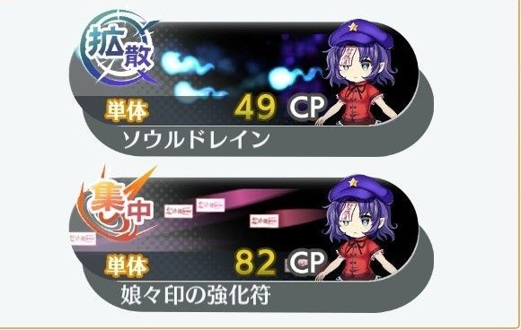 | ブーストアミュレット×1 | 無属性/陰気/単体 御札弾 命中率75% CRI率5% 神霊&霊魂特攻 威力:6.86 | 2 |