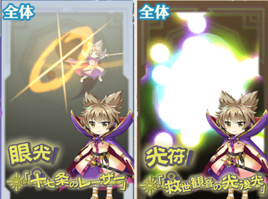 | 聖人の威光 ×2 | 日属性/陽気/全体 エネルギ―弾 命中率75% CRI率5% 威力:2.74 | |