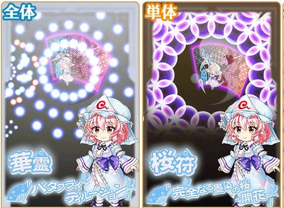 | 幽蝶の誘い ×1 | 無属性/陽気/全体 斬撃弾 命中率75% CRI率5% 人間&巫女&魔法使い&メイド特攻 威力:6.40 | |