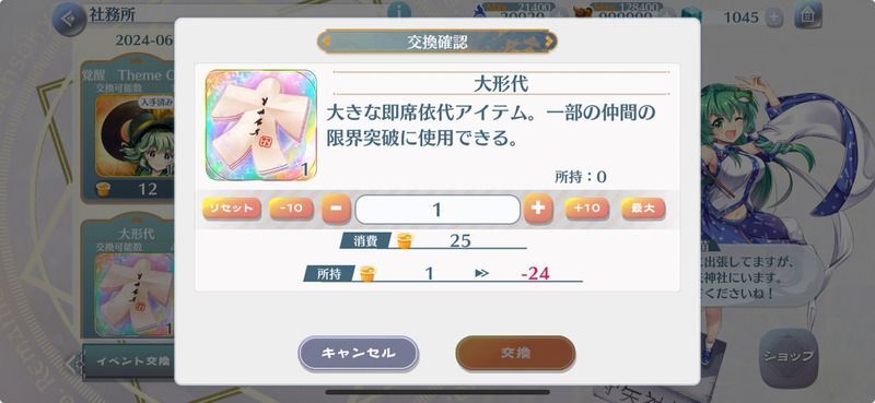 | 交換所 | 仲間確定祝詞 新登場絵札、各種指南書 |