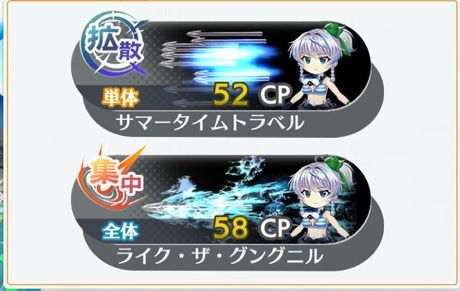 | 夏の時間逆説 ×2 | 月属性/陰気/単体 尖弾 命中率75% CRI率10% 威力:3.44 | |