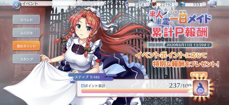 ログインボーナスで1枚、交換所で前半後半合わせて2枚、累計ポイント報酬で2枚。ステップ93、50000ポイント集めるまで周回出来れば両方の絵札を限凸してイベントを終わらせられます。