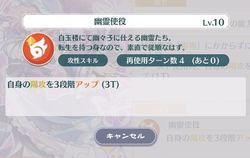 | 【強化後】自身の霊力を1.00上昇 味方全体の陽防を2段階アップ(2T) CT5 | |