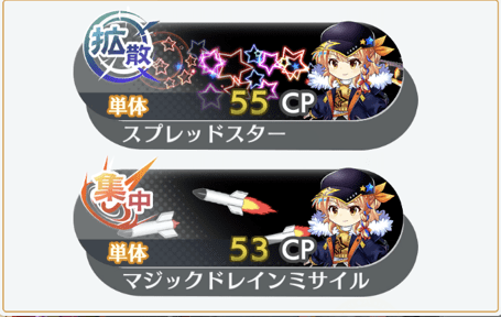 | 試製MD推進弾14号 ×2 | 無属性/陽気/単体 ミサイル弾 命中率75% CRI率10% 妖精&魔法使い&月の都特攻 威力:6.55 | |