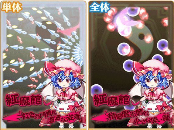 | 全体攻撃 【攻撃前】味方全体の陰攻を2段階アップ(3T) 味方全体の陽攻を2段階アップ(3T) 相手全体のCRI防御を2段階アップ(3T) 【攻撃】月属性必中斬裂各種特攻尖弾 【弾幕構成】陰気のみ 【ブースト追加】月属性焼夷各種特攻弾/月属性斬裂CRI攻撃上昇各種特攻弾/月属性斬裂CRI命中各種特攻弾/月属性斬裂各種特攻弾/月属性吸収焼却各種特攻弾 【攻撃後】自身の結界を2枚増加 | |
